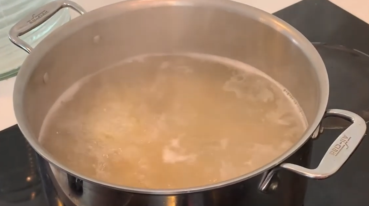 Take 3/4's of a cup of pasta water from the pasta as it boils.