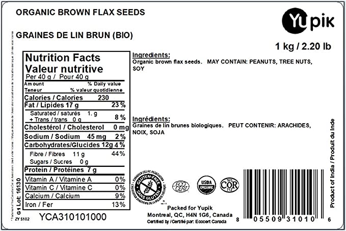 Yupik Organic Brown Flax Seeds, Non-GMO, Vegan, Gluten-Free, 1Kg